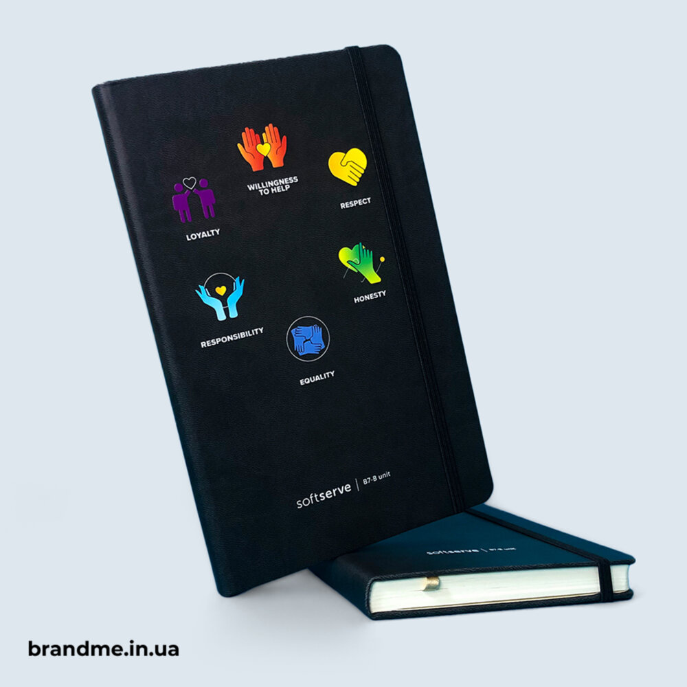 Корпоративні блокноти – це канцелярія, якою користуються всі в офісі. Вони мають чітку бізнес-цінність та виконують низку функцій. Мерч об’єднує команду і показує її професійний рівень. Кожен блокнот із логотипом виконує функцію мобільного рекламного носія, який супроводжує людину щодня. А ще блокноти потрібні завжди – на зустрічах, тренінгах, у подорожах чи просто в офісі.