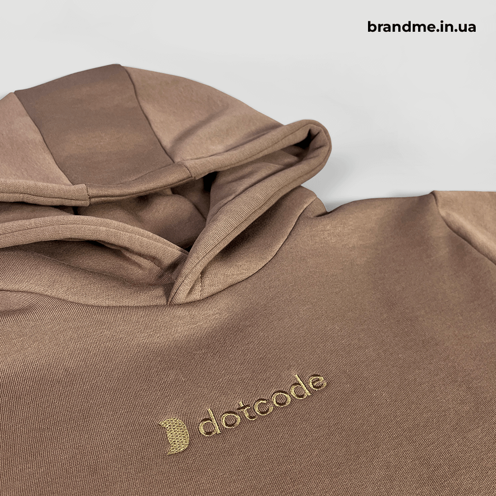 - вишивка – преміальний варіант нанесення логотипа на худі, довговічний і естетичний, чудово підходить для корпоративних худі або подарункових комплектів.