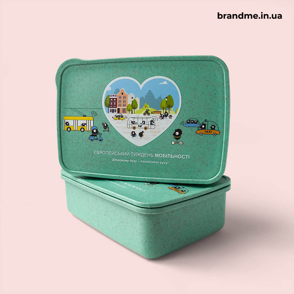 Площа ланч-боксу дозволяє нанести логотип або будь-яке інше кольорове зображення на його поверхню.