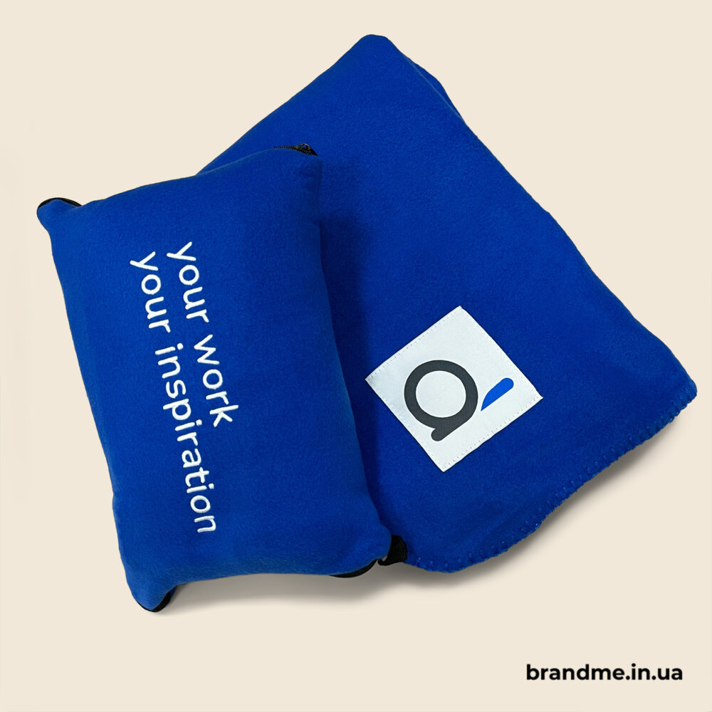 - флісові пледи з логотипом – легкі, теплі й практичні, ідеальні для офісу чи виїзних заходів;
