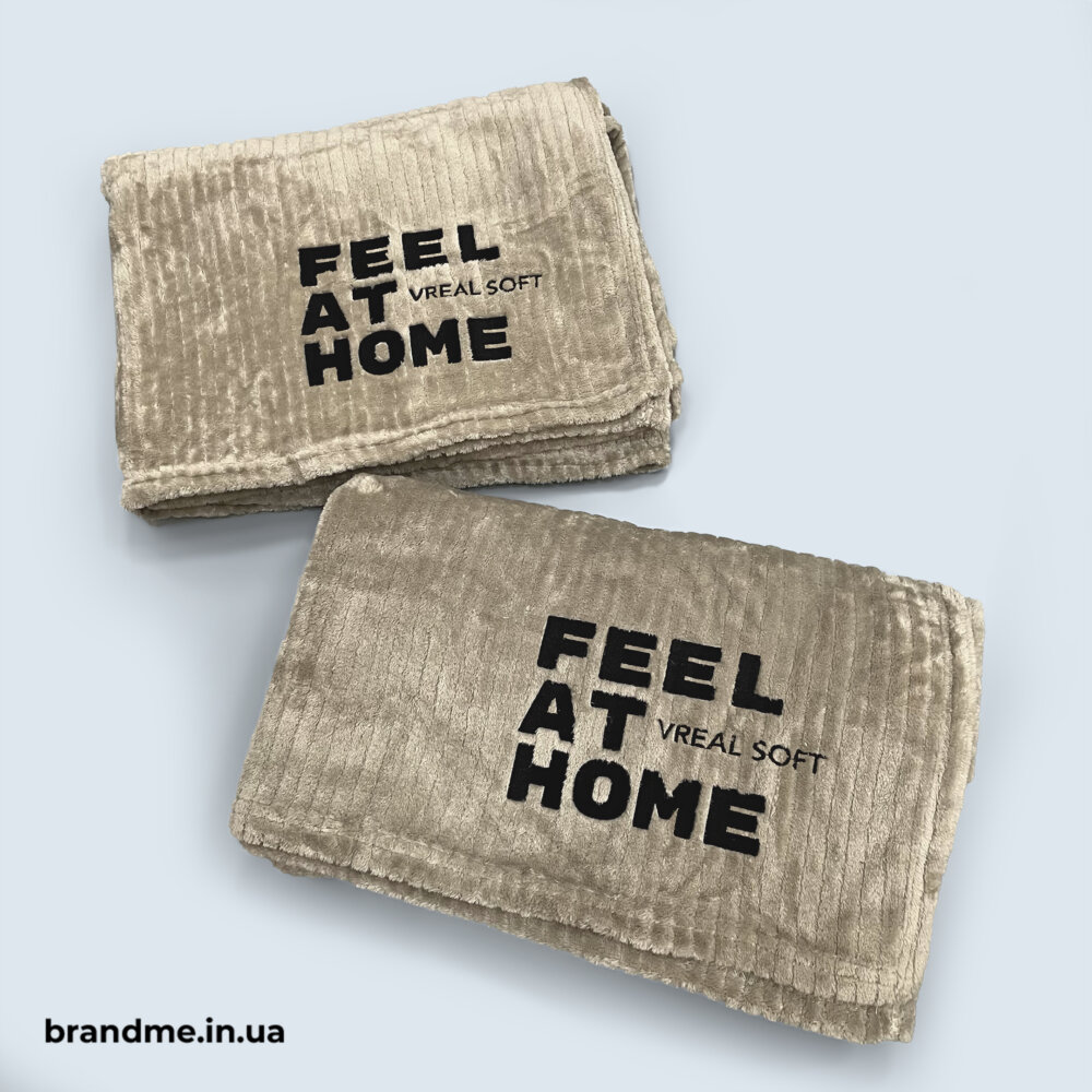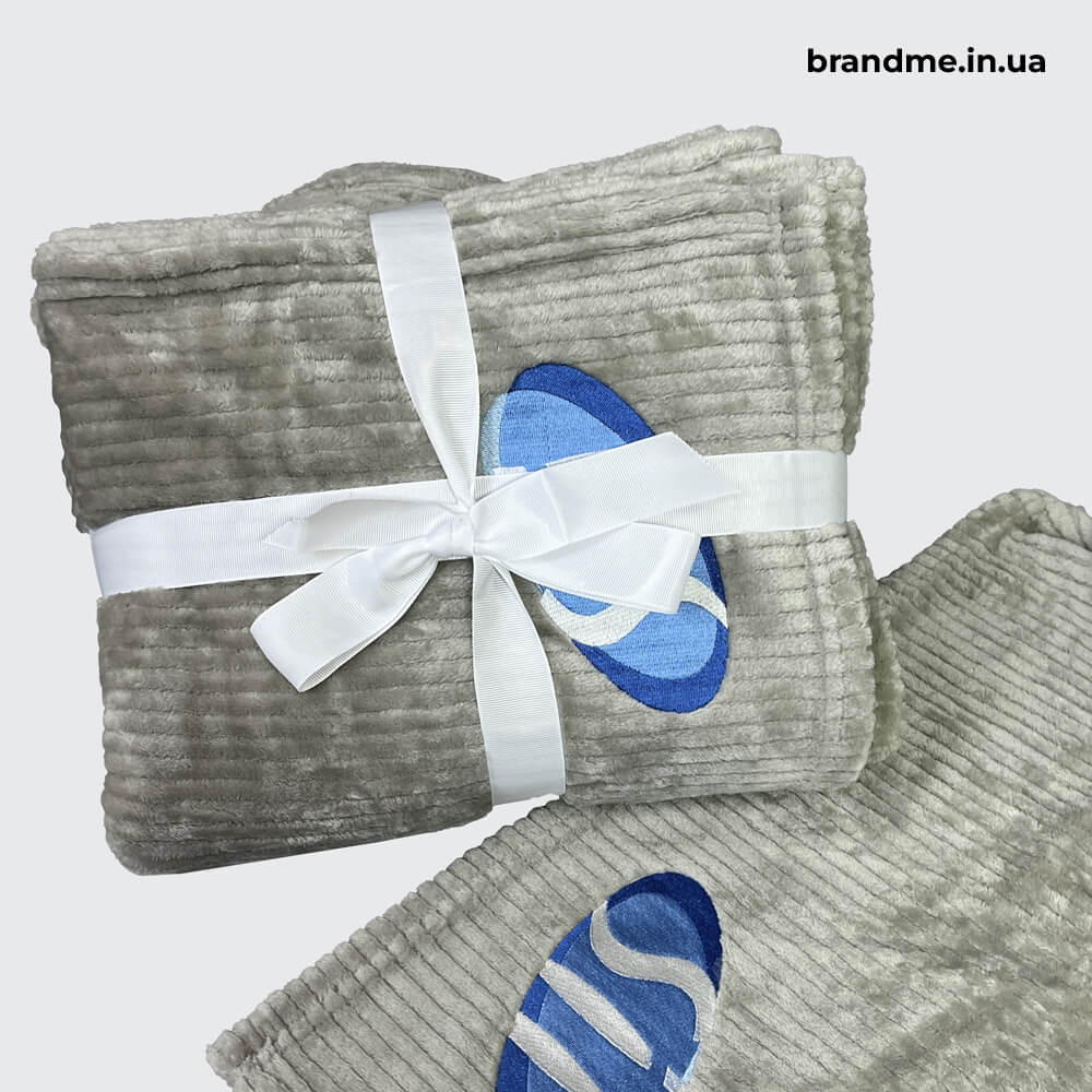 - пледи з корпоративною символікою – допомагають створити цілісний образ бренду та підкреслити його впізнаваність.